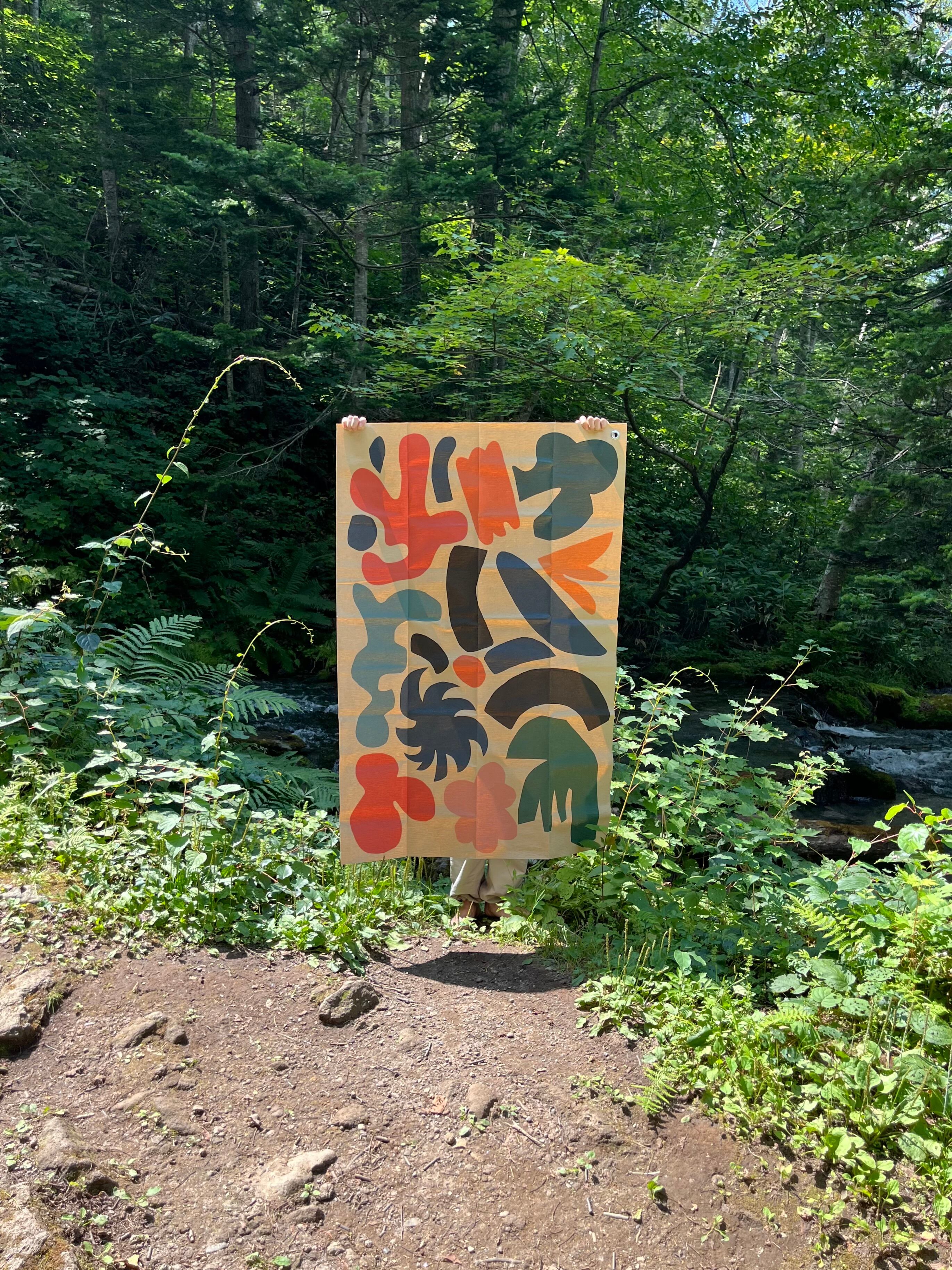 今回アーティストの河合 浩さんに原画を書き下ろしていただきレジャーシートを作成しました。